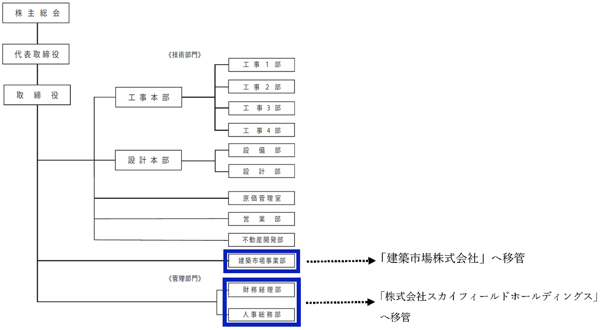 財務経理部・人事総務部は、経営基盤の強化と業務運営の効率化を目的として株式会社スカイフィールドホールディングスに移管いたします。